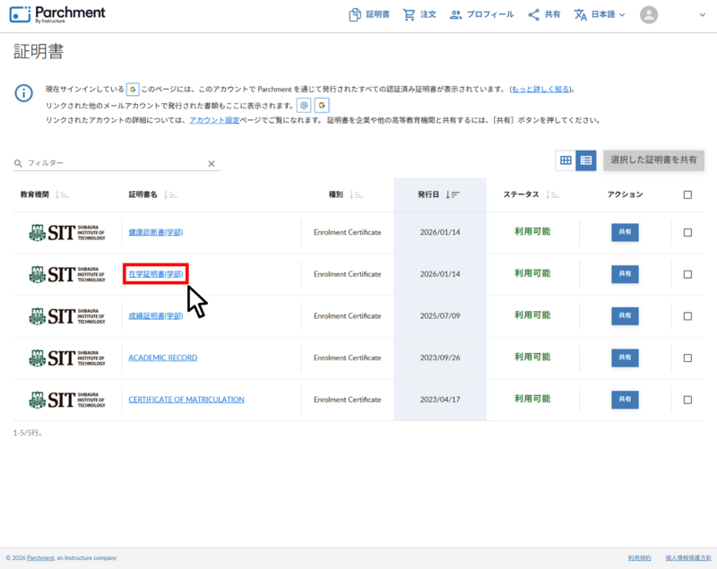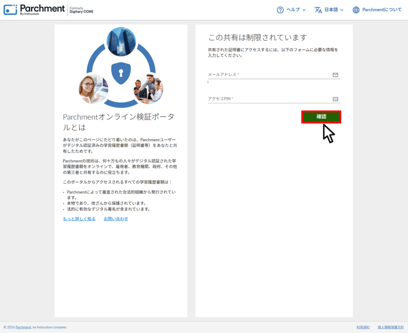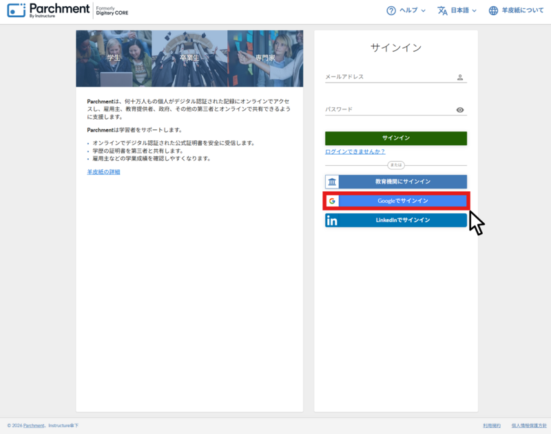 ホーム > サービス > デジタル学修歴証明書 > Parchment(旧DIGITARY CORE)利用ガイド