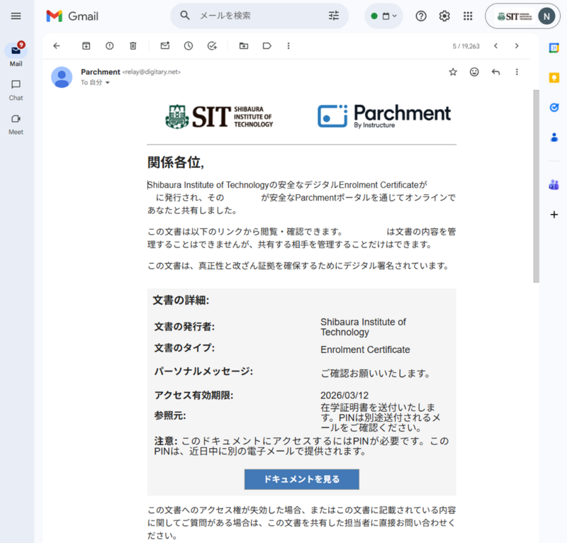 メール本⽂内にある「View Document」をクリックします。