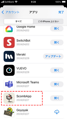 - アプリ一覧から「ScombApp」を探し、「ScombApp」をタップします。