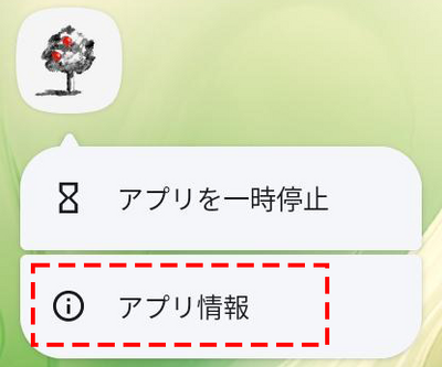 - ホーム画面やアプリ一覧画面から、「ScombApp」アイコンを長押し「アプリ情報」をタップします。