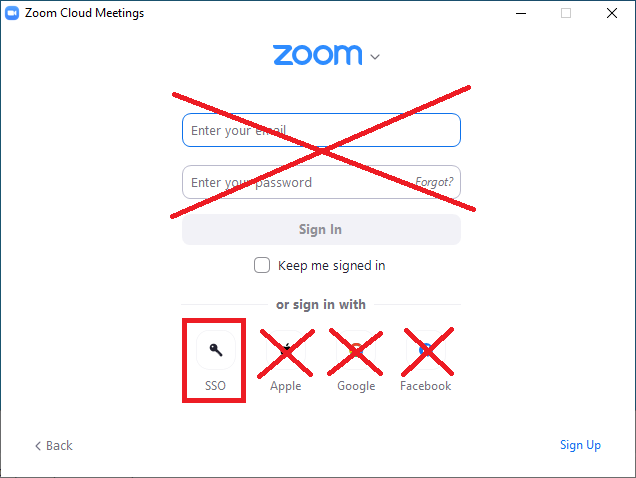 You will not be able to join online lesson meetings using the wrong sign-in method.