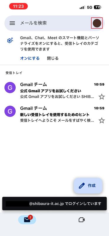 iOSの方は、Gmail等Google製アプリを開くと、以下の画面に切り替わります。