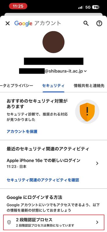 2026年1月8日(木)以降、本学アカウント(@shibaura-it.ac.jp)を用いた Google サービスへのログインには、2段階認証の設定が必須となりました。