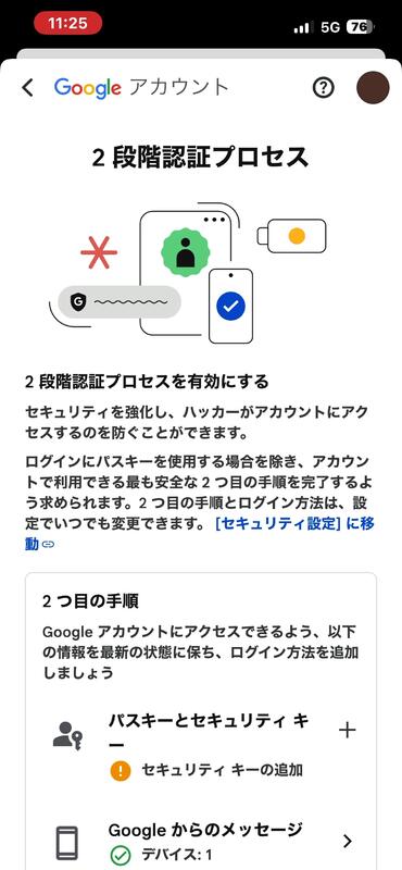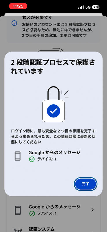 1-7. これでGoogleアカウントの2段階認証設定は終了です。