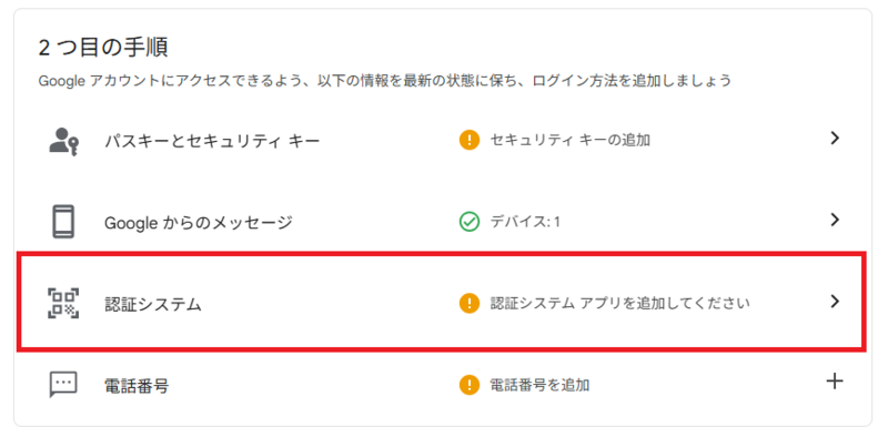 3-1. 「2つ目の手順」の「認証システム」を選択