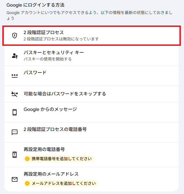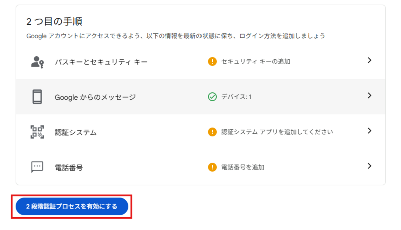 セキュリティを強化するために、2段階認証を有効にすることをお勧めします。
