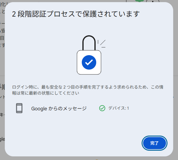 2-7. 2段階認証を有効にすると、Googleサービスログイン時に2段階認証が求められます。