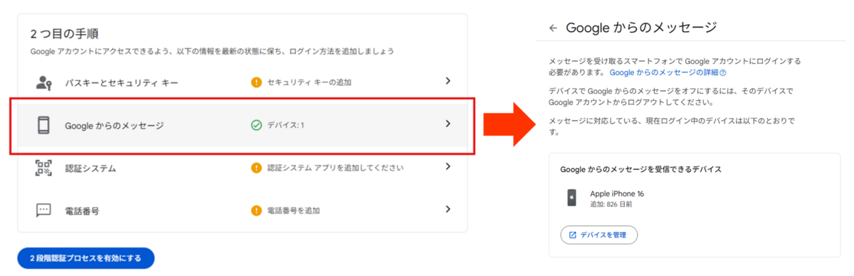 1-5. 「Googleからのメッセージ」を選択し、お手持ちの端末が登録されているか確認します。