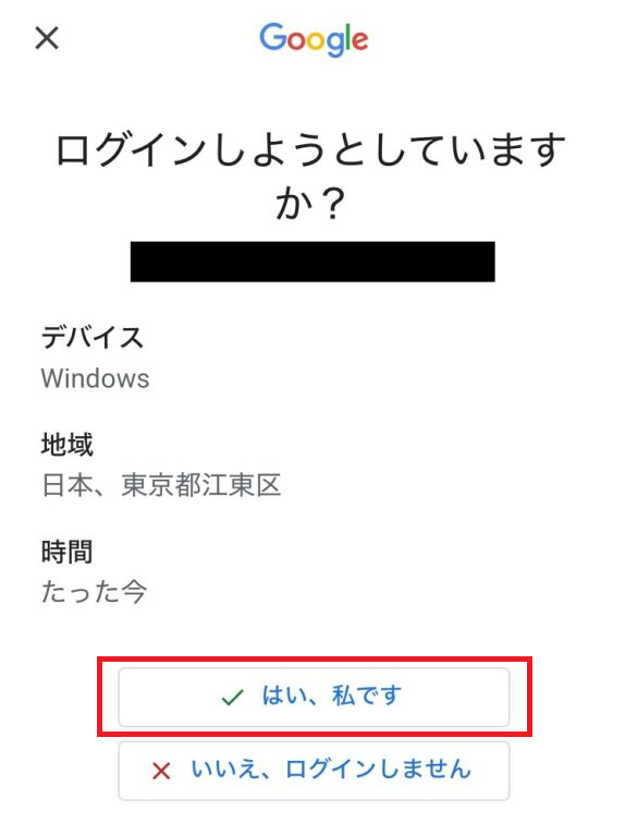 お使いのスマートフォンに学番アドレスでログインしている場合、Gmail・YouTube等のGoogle製アプリにログインの確認が通知されます。