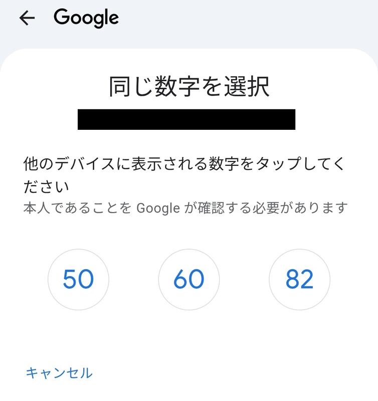 ログインする端末の画面上に表示されている数字と同じ数字を選択します。