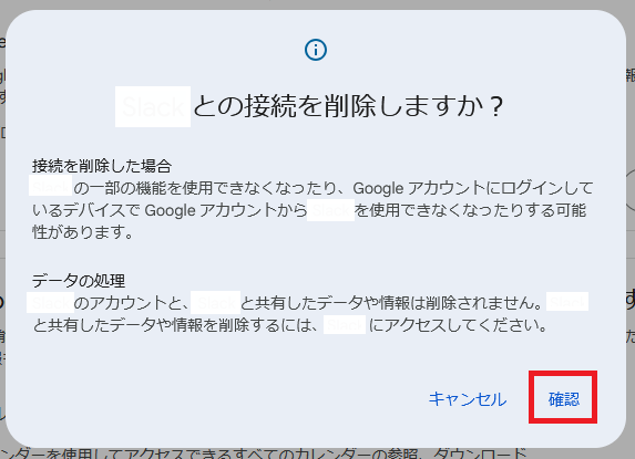 連携を解除する場合は、「(アプリまたはサービス名)との接続をすべて削除しますか?」をクリックします。