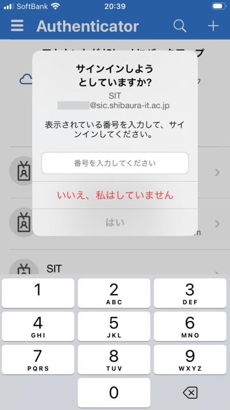 スマホに通知が届きますので、スマホに2桁の数字を入力して「はい」をタップします。