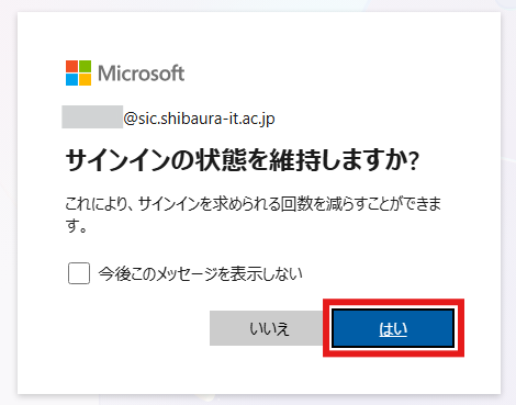 サインイン回数を減らしたい場合は「はい」をクリックします。(任意)