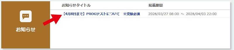 まずは「PROGテストの受験が必須であること」と「最終的な期限は4月8日(水)であること」の2点を、しっかり確認しておきましょう。