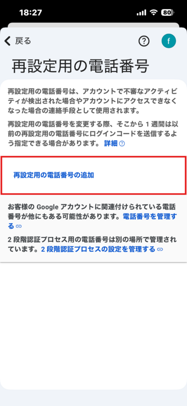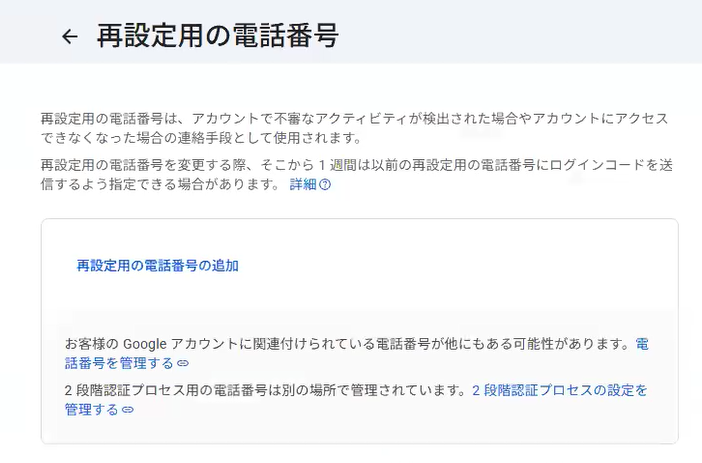 2.1.2. 「再設定用の電話番号の追加」を選択します