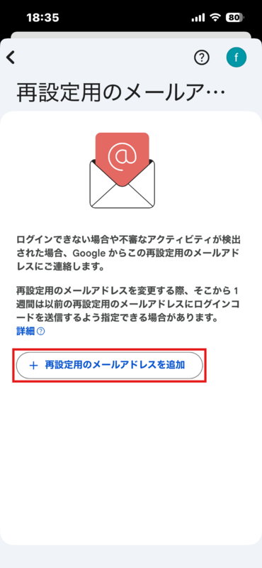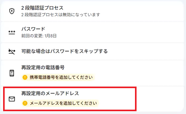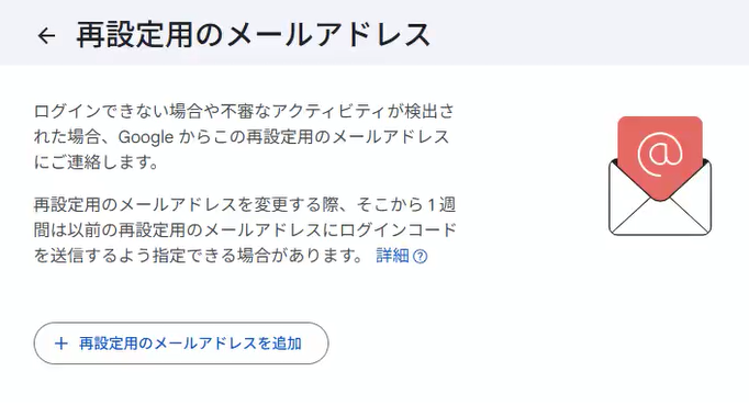 2.2.2. 「再設定用のメールアドレスの追加」を選択します