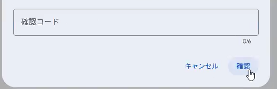 「コードをテキストメッセージで受け取る」を選択した場合、確認コードがSMSで送信されます。