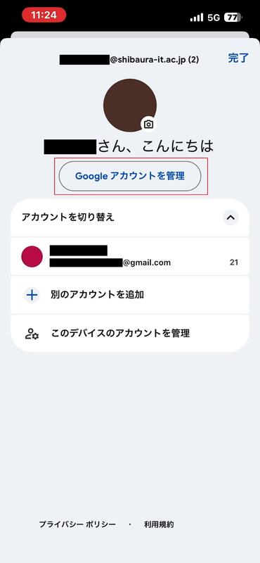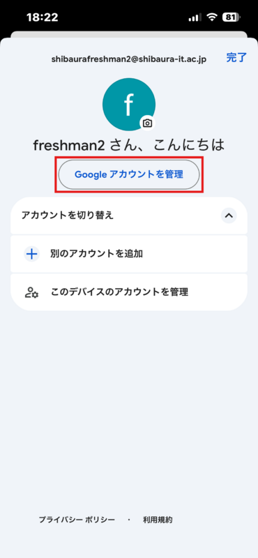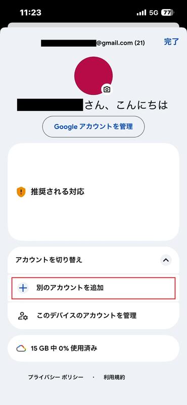 1.2.1. 右上のアカウントアイコンをタップして、「別のアカウントを追加」を選択します。