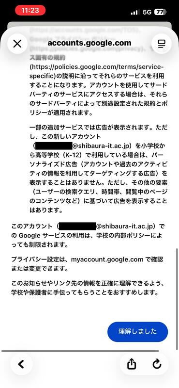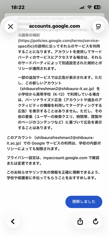 1.2.4. 利用規約を確認します。最下部にスクロールして、「理解しました」をタップします。