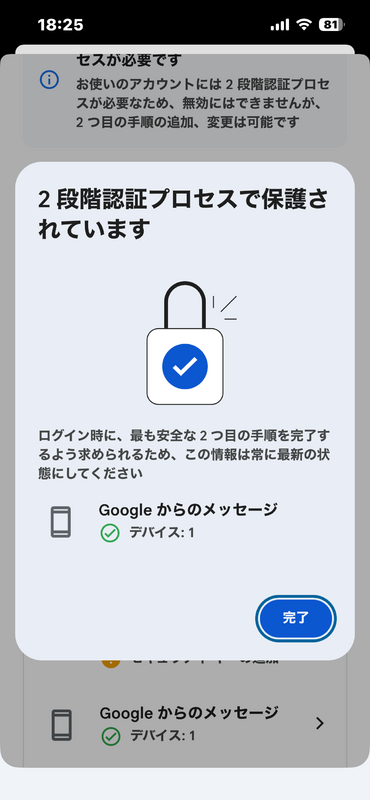 1.3.6. これでGoogleアカウントの2段階認証設定は終了です。