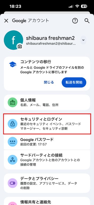 2.1. Google アカウントで「セキュリティとログイン」タブを開きます