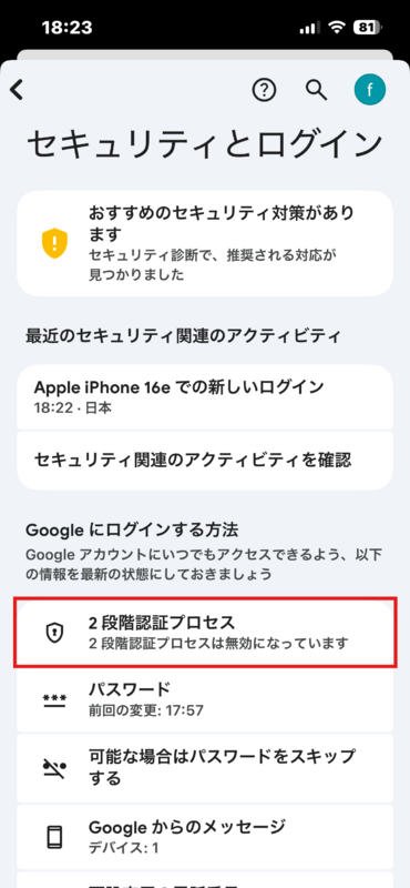 2.6.1. Google アカウントで「セキュリティとログイン」タブを開きます