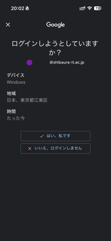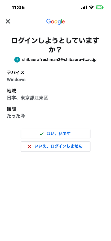 3.5. 自分のデバイスであることを確認し、【はい、私です】を選択