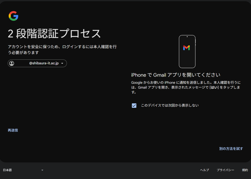 注意:入学後1ヶ月を経過すると、2段階認証を設定していないアカウントにログインすることができなくなります!