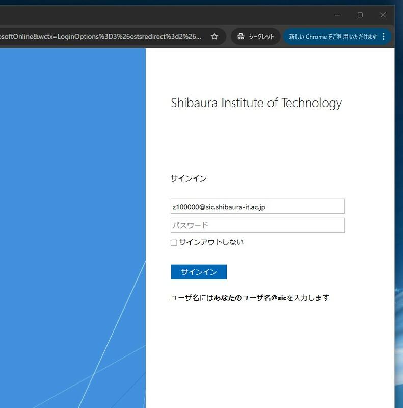 学情ID@sic.shibaura-it.ac.jp (例:z100000@sic.shibaura-it.ac.jp)