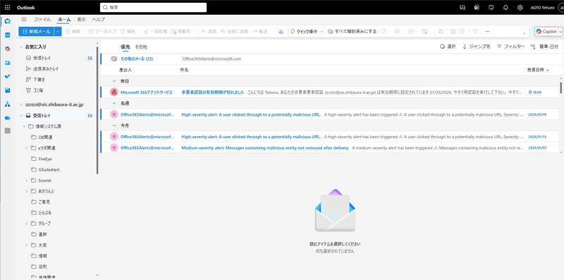 ★「1.ExchangeOnlineのログイン方法」にて、メールを見ることができた