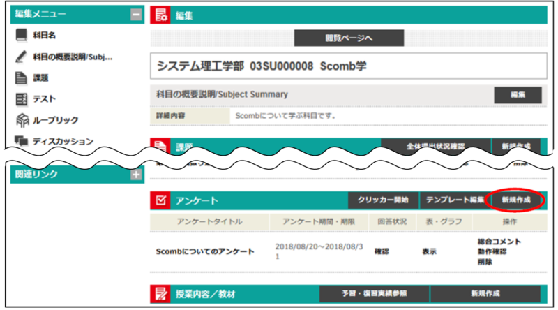 ホーム > サービス > 授業支援 > Scomb > アンケート新規作成