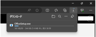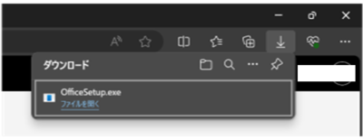 5.ダウンロードが完了したら「ブラウザ右上のダウンロードマーク」か「エクスプローラー(フォルダ)>ダウンロード」から「OfficeSetup.exe」のファイルを開いてください。