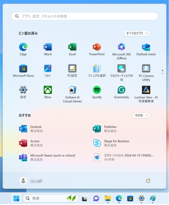 スタートメニュー (Windows) やDock (Mac) からWord、Excel、PowerPointなどのアプリがダウンロードされていることを確認してください。