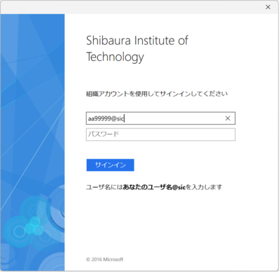 ※この画面にてログインに失敗する場合、ユーザ名を "学情ID@sic" ではなく "学情ID@sic.shbaura-it.ac.jp" として再度お試しください。