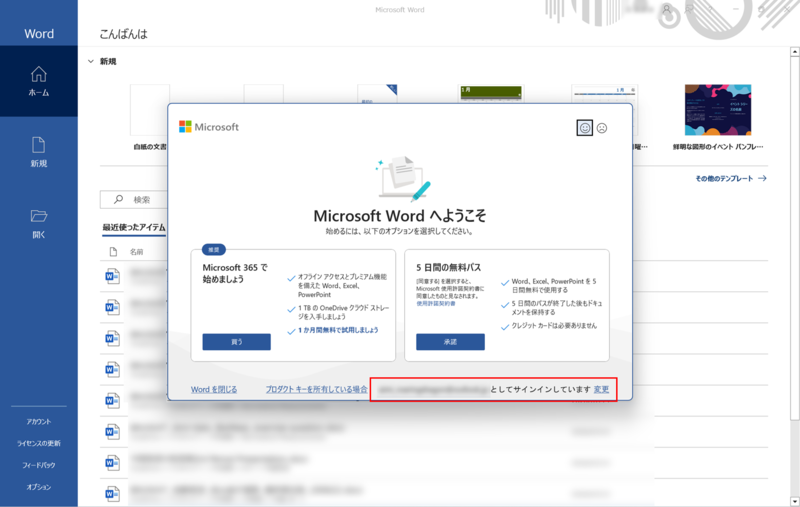 個人でマイクロソフトアカウントを取得していない場合は、この画面は表示されません。
