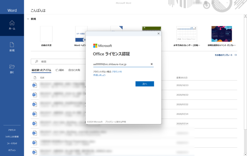 ※セットアップ中にログインが求められた場合、"学情ID@sic.shibaura-it.ac.jp" のアカウントでログインを行ってください。また、上記「ログイン認証(SSO)」と同様の画面が表示された場合はユーザーIDを "学情ID@sic" としてください。
