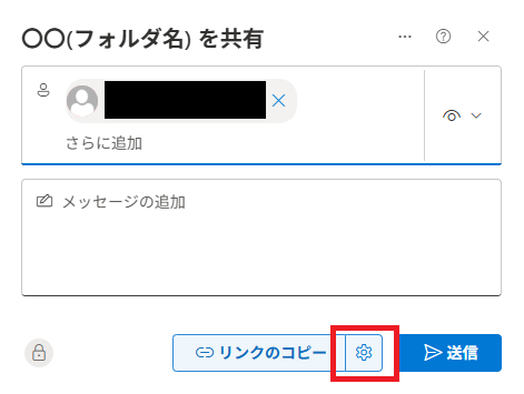 1.5.4 歯車アイコンをクリック。「共有の設定」画面が表示されたら、以下のように設定をします。