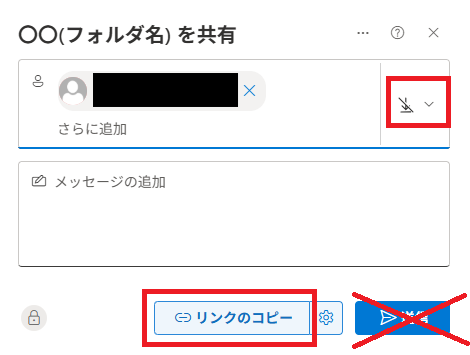 ※右上の権限マークが、「ダウンロードできません」のマーク(下矢印に斜線)になっているか確認してください