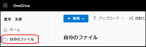 1.2.0 左上の名前の下の項目を、「自分のファイル」に変更する